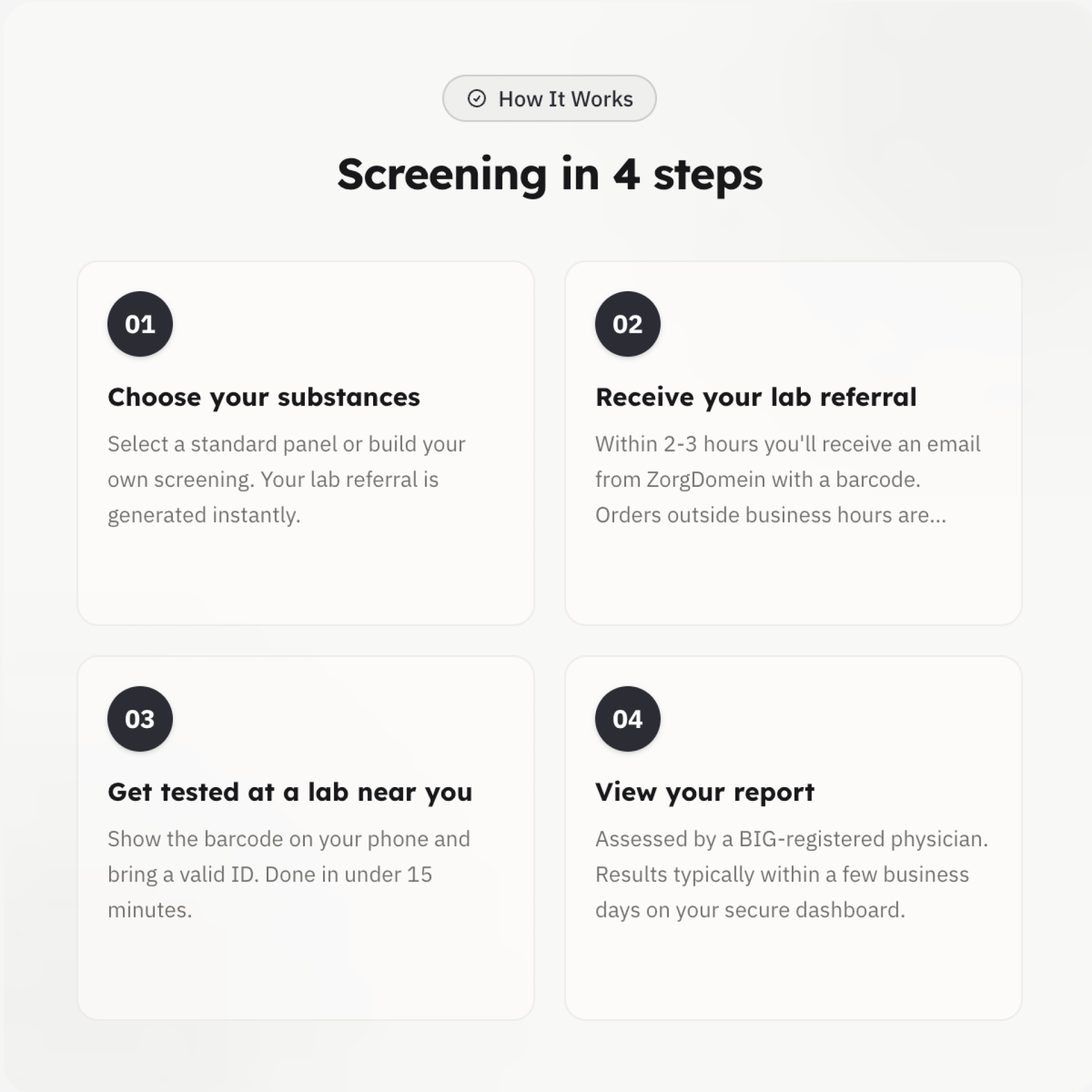 Assessed by a BIG-registered physician. Results typically within a few business days on your secure dashboard.